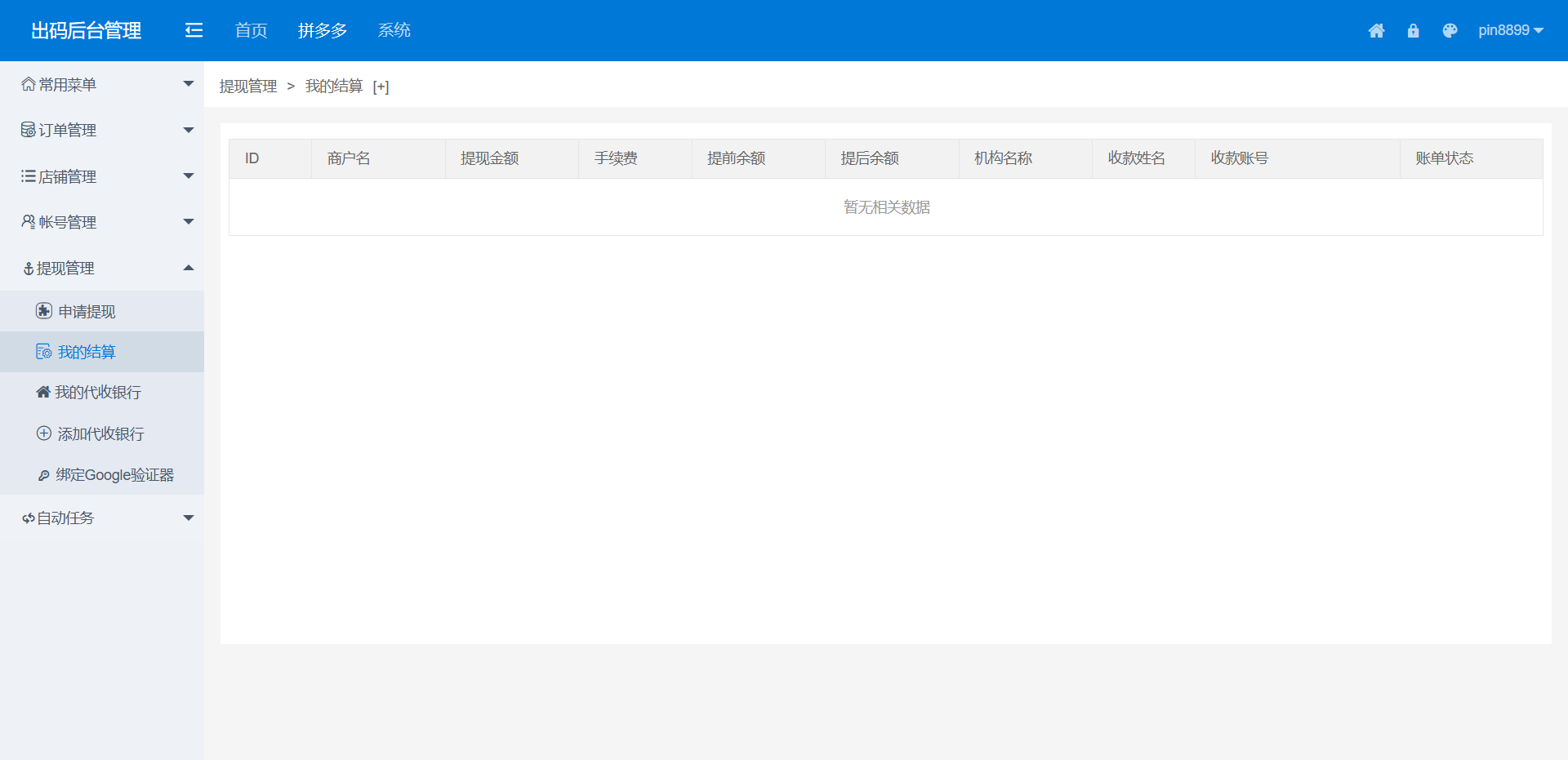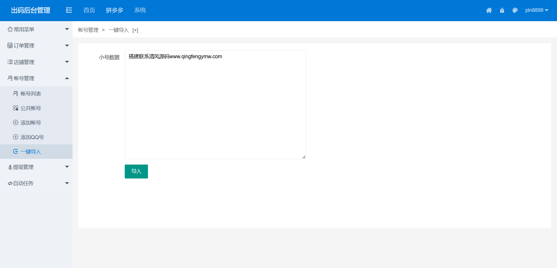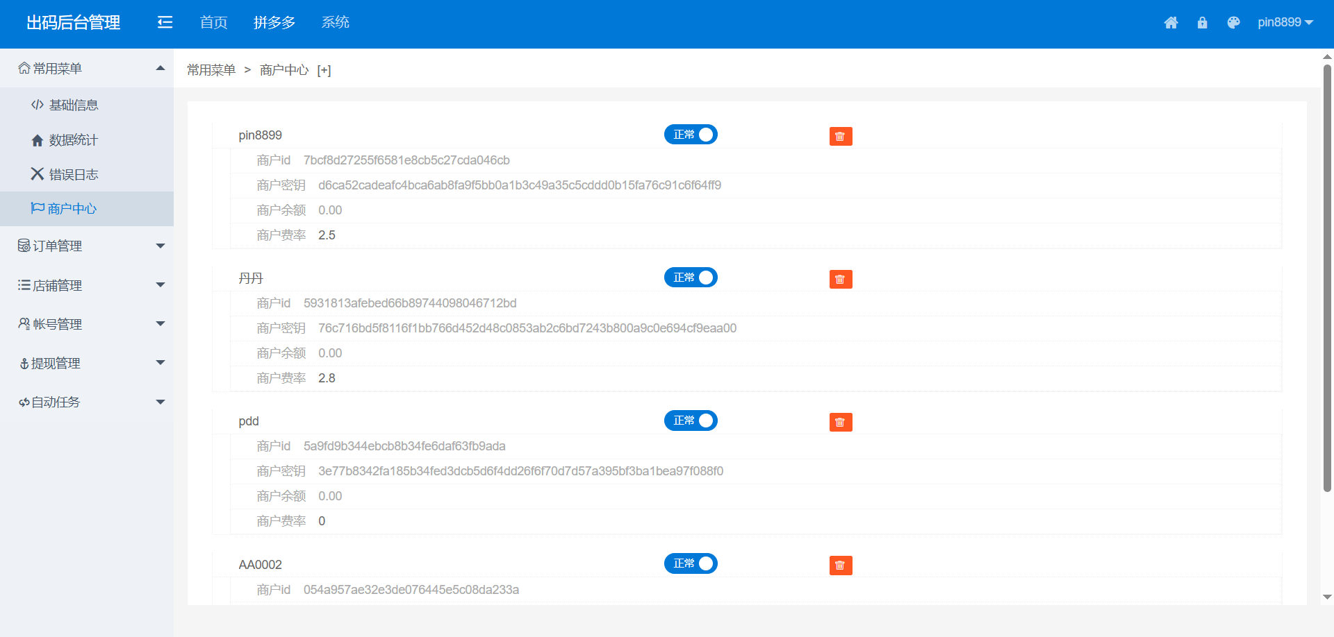 本系统为拼多多出码通道定制化支付解决方案,集成PC端实时监控、授权端程序与自动化运营模块。系统支持多账号轮询出码,实现支付流程全自动化管理,适用于四方支付业务场景。
