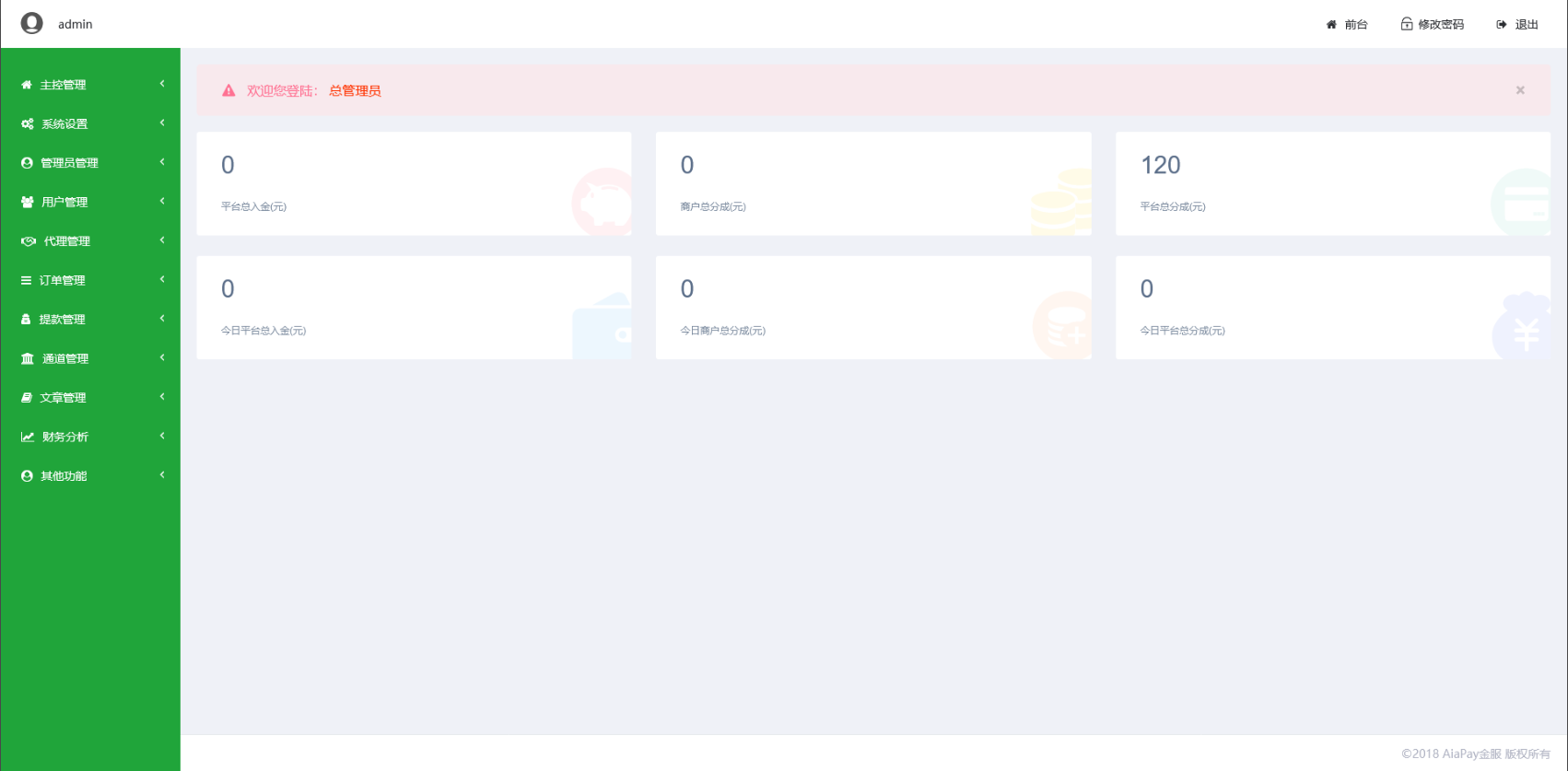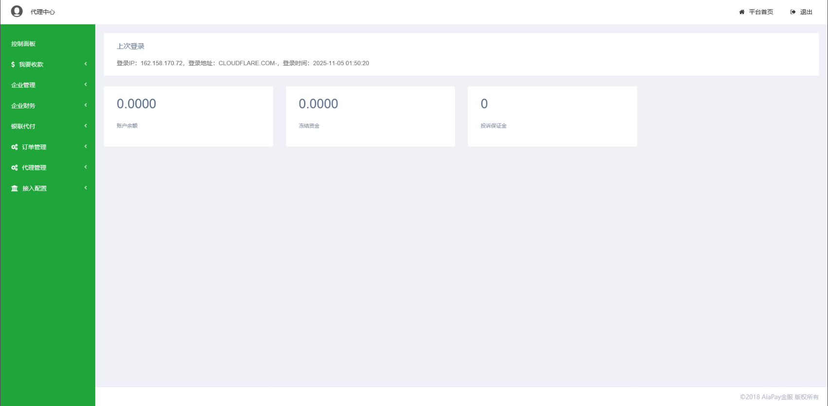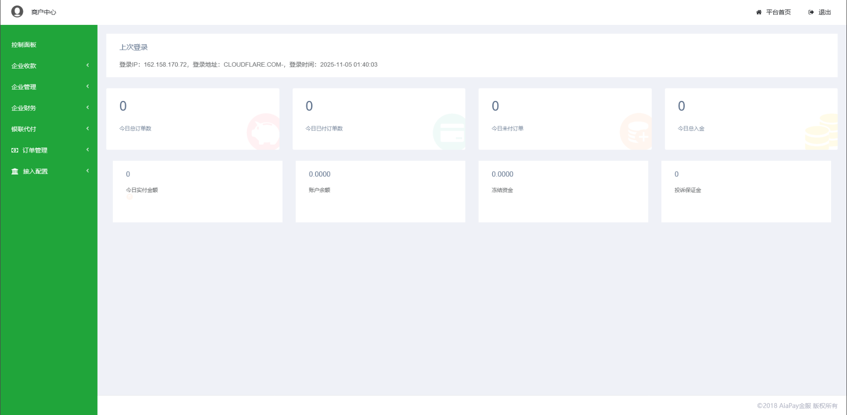 Aiapay聚合支付系统采用PHP语言开发,集聚合收款、自动代付、商户接入与API调用于一体。系统结构简洁清晰,模块划分明确,提供完整的支付流程与标准化SDK接口,特别适合技术服务商、第三方支付平台及聚合代收企业快速搭建独立支付系统。