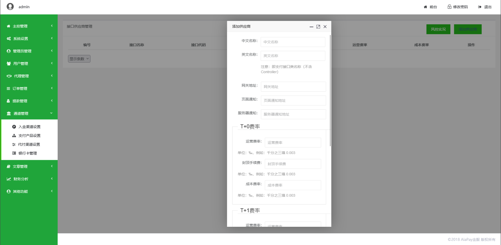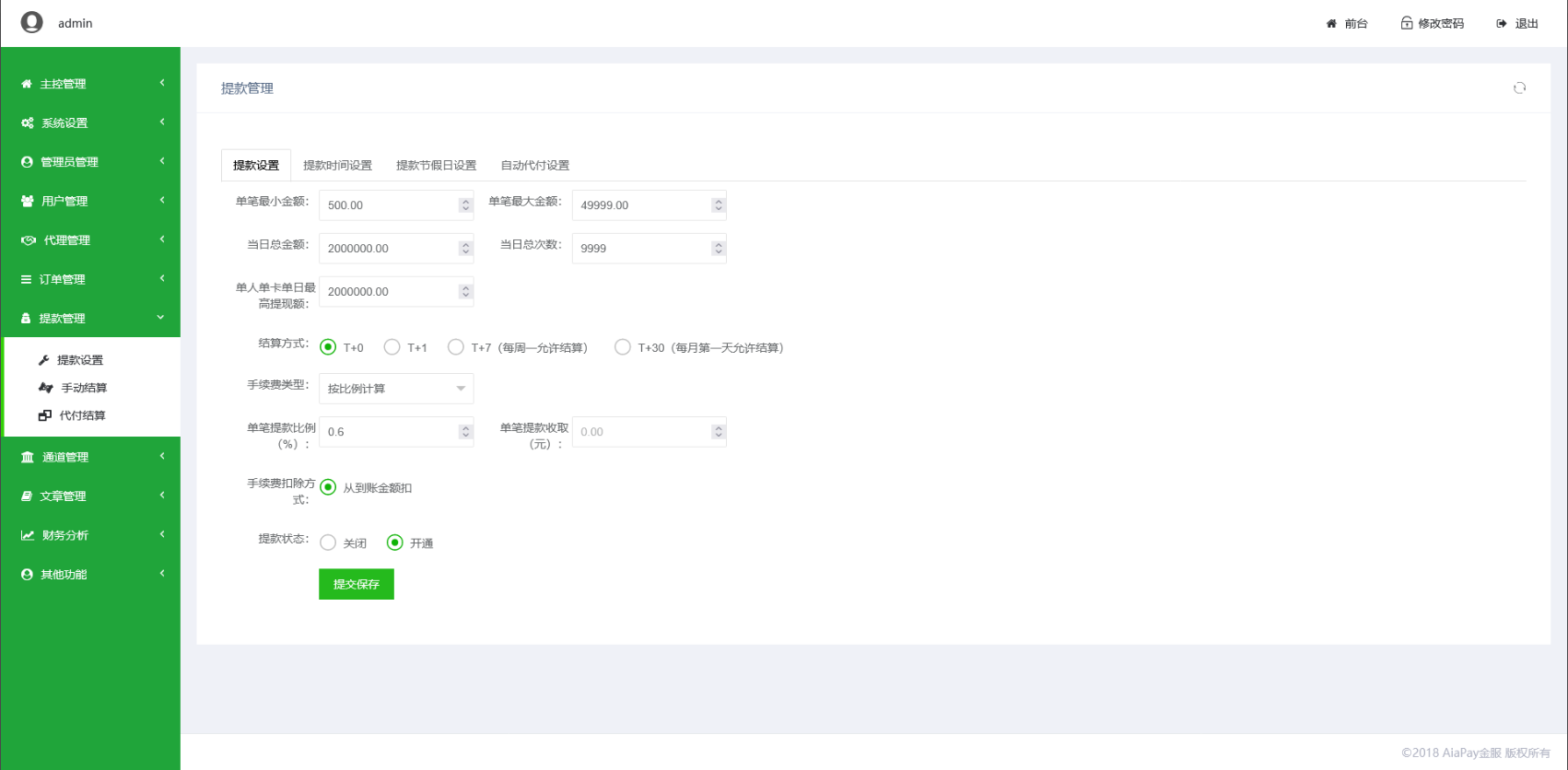 系统采用收款与出款一体化架构,为商户提供全闭环资金管理解决方案。后台支持自定义通道配置、独立结算规则与灵活手续费设置,显著提升系统扩展性与业务适应性。