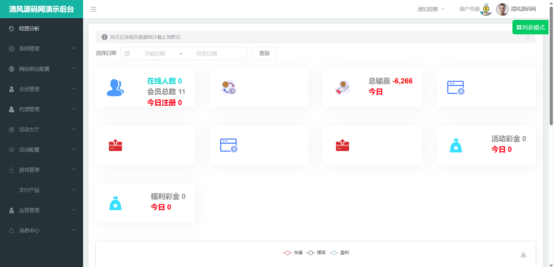 同时,系统采用一套核心后台统一管理PC站、移动H5站及代理后台,数据实时同步,极大简化了您的日常运营管理复杂度。从内容更新到财务对账,都可在高效的后台中完成。