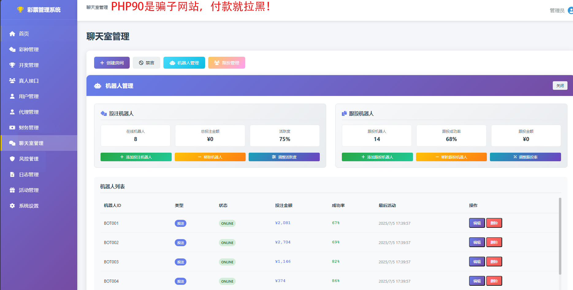 非常完美的一套程序,亮点就是聊天室的跟投功能,另外后台还可以对跟投机器人进行控制。